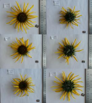 | Helianthus annuus | Ligules number | 20.5 | Inflorescence traits | Ligules | Quantitative |