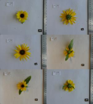 High Resolution Image of individual sunflower inflorescences showing both top and bottom sides of them (most of the times in triplicate).