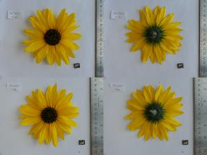 High Resolution Image of individual sunflower inflorescences showing both top and bottom sides of them (most of the times in triplicate).