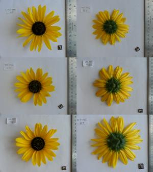 High Resolution Image of individual sunflower inflorescences showing both top and bottom sides of them (most of the times in triplicate).